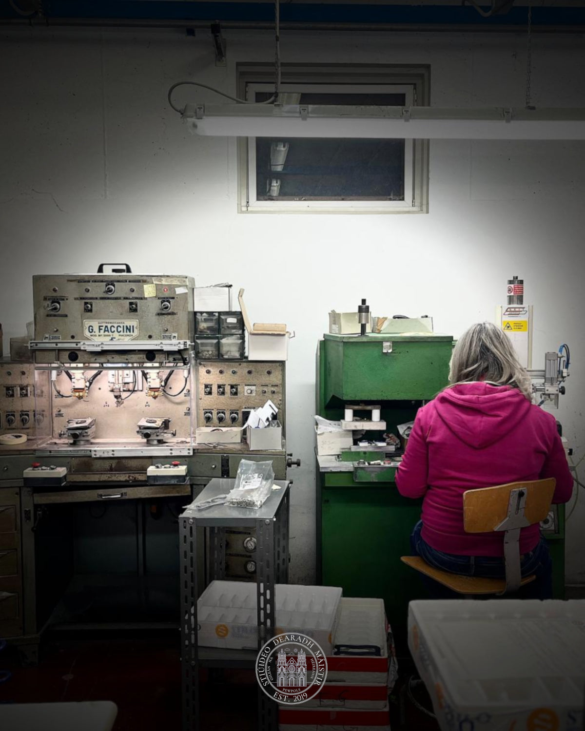 Our Italian atelier lies at the very heart of our brand - a place where ideas spring to life. Our dedicated team embodies the essence of our brand, embracing our vision to create exceptional eyewear. For our signature collection, we carefully selected bespoke acetate, made exclusively for Pewpols. Each frame is adorned with exquisite details, including gold-plated wire cores. It took us two years of unwavering dedication and passion to launch Pewpols Signature - a collection that epitomizes our love for design and craftsmanship. Our signature glasses harmonize Irish precision with Italian elegance - designed in Ireland and handcrafted in Italy.